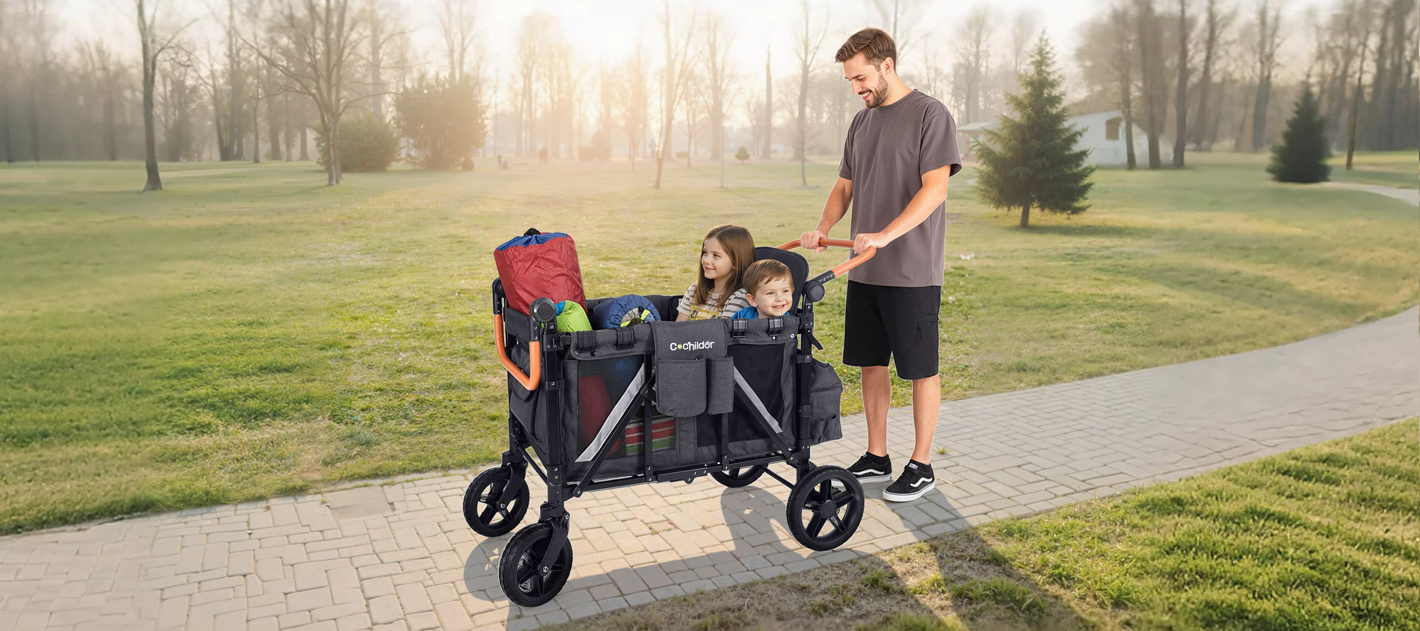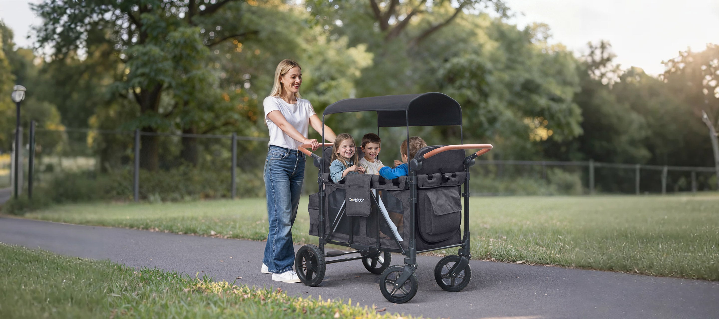 Our stroller wagon comfortably accommodates up to 4 children, making it ideal for growing families or outings with friends.
