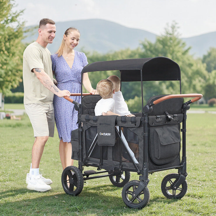 Versatile and spacious wagon strollers built for family outings, offering a comfortable and social ride for little ones